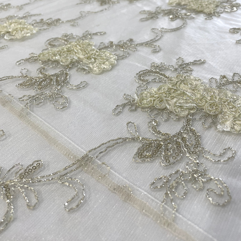 White with Silver Sparkle Flowers Speciality Linen 90"x90"
